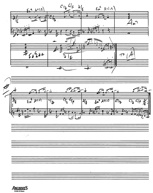 "You're the One"(Billy Osborne-Zane Giles) as heard on the 1978 The Emotions' recording, SINCERELY(Red Label). Hand-written Rhythm Section Lead Sheet, Steve Khan. Soundclip: |